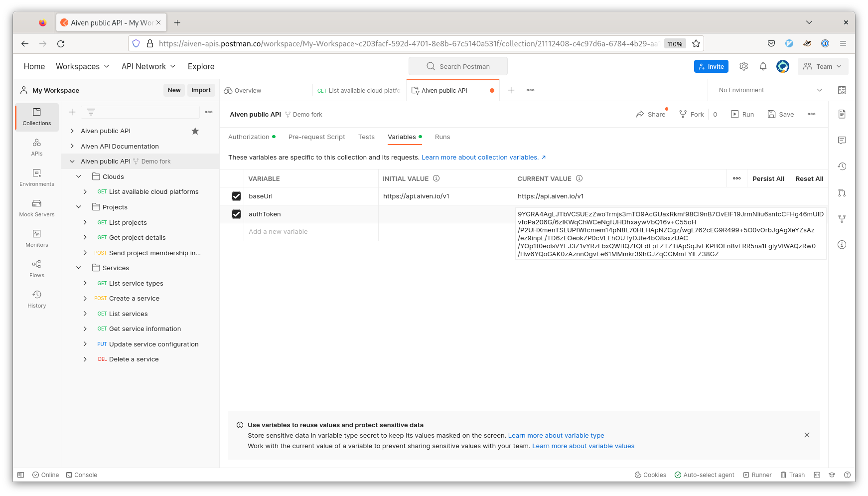 Get to know the Aiven API with Postman